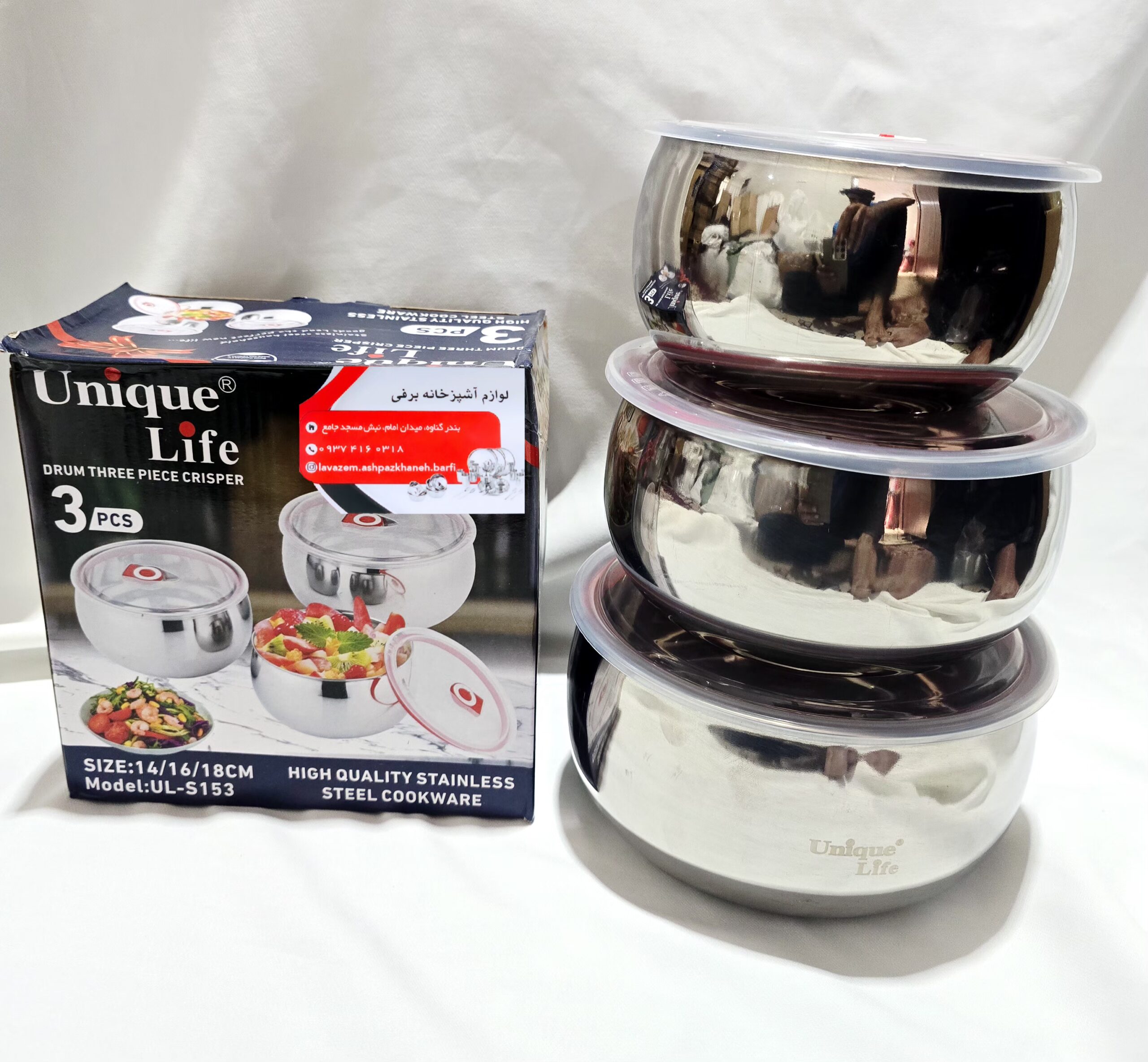 ظرف غذای استیل سه تیکه برند یونیک سایز بزرگ درب پلاستیکی واشردار استیل خالص اهنربا نگیر ضدزنگ و سیاه شدن بدون ریختن مایعات