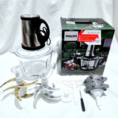 خردکن برقی و غذاساز فلیپس شیشه ای (پیرکس ) 3/8 لیتری برند فلیپس کیفیت فوق العاده عالی 6 تیغه ، تیغه طلایی ،قدرت 3000 وات